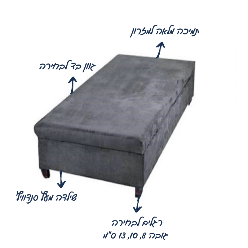 בסיס מיטה מרופד כולל ארגז מצעים יחיד – גוונים לבחירה