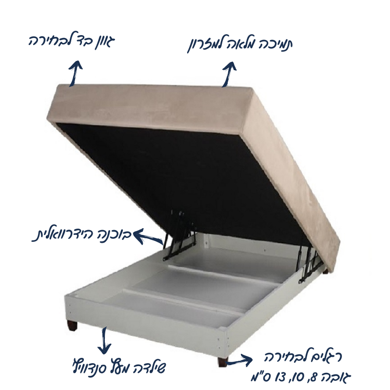 מיטת נוער שוהם נפתחת מתכווננת ידנית כולל ארגז מצעים